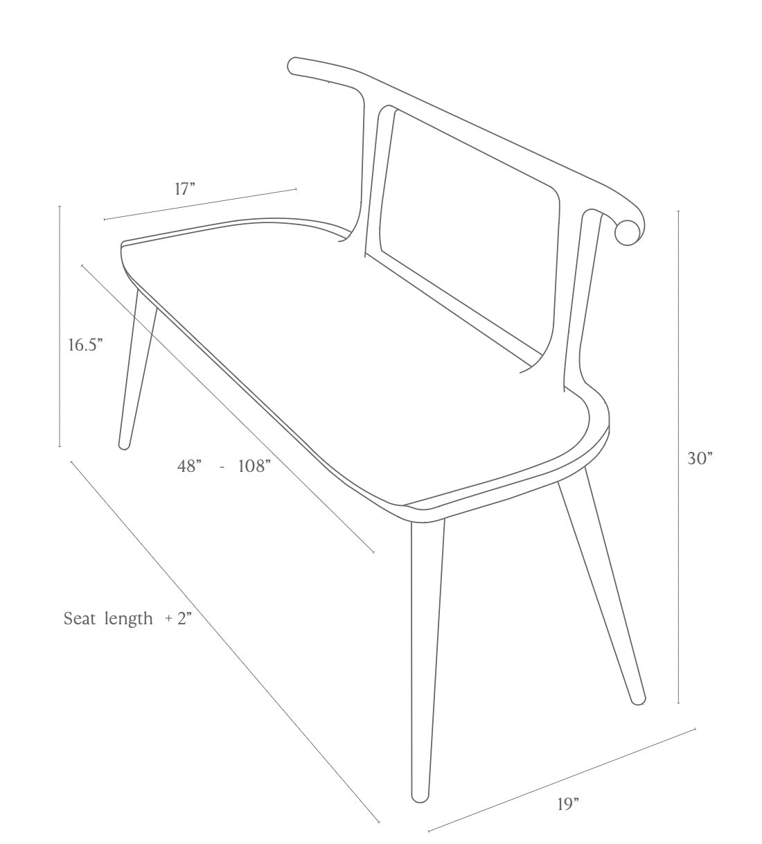 Overall Footprint: Add 2” to seat width, 19” deep