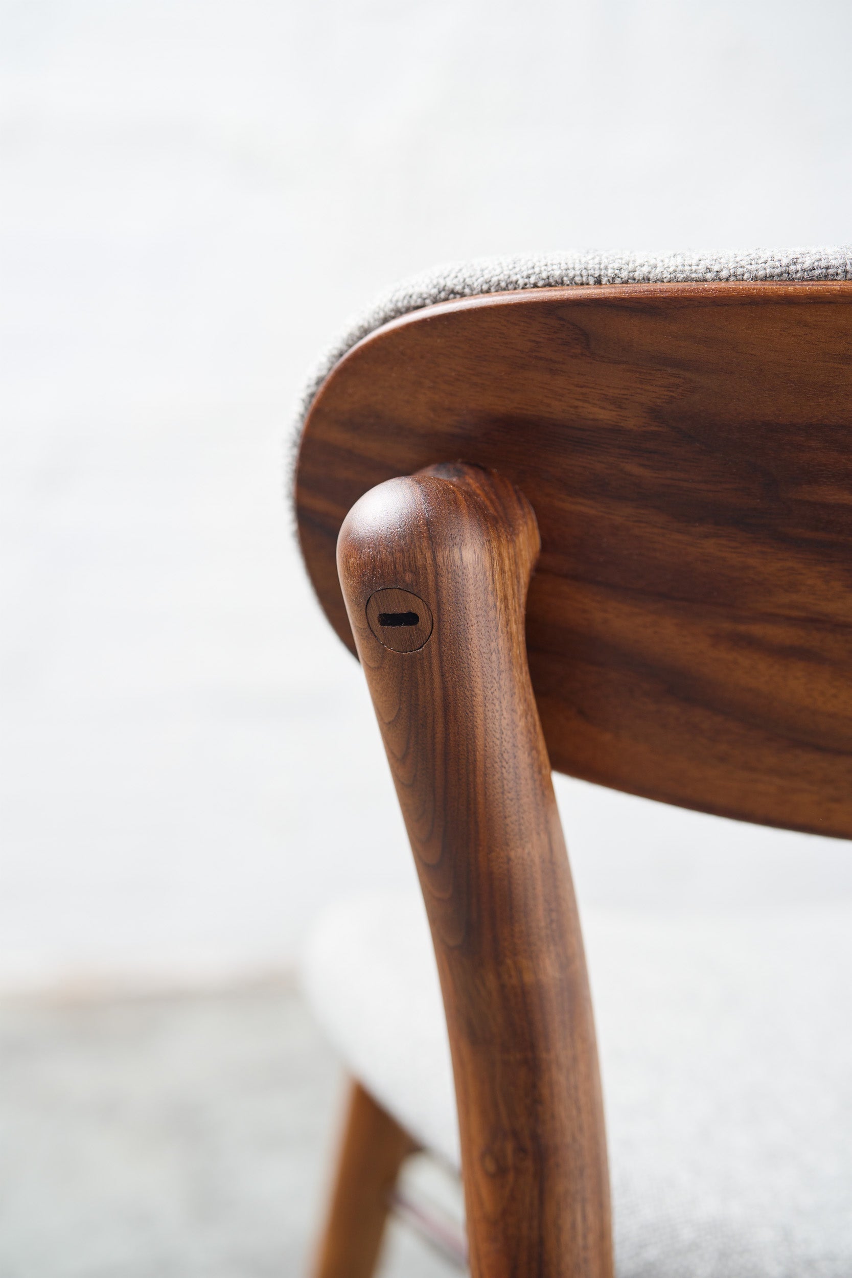 Our woodworking team appreciates that each chair includes all three standard methods of creating curved wooden parts - steam bending, bent lamination, and shaping. Which brings me to one of my other favorite aspects of fjoon - it really was a team design effort at Fernweh Woodworking to create this collection. Each member of the team gave critical feedback, did countless sit tests, built key fixtures, jigs, and prototypes, as well as aiding in our final materials selection for our ten new upholstery options.