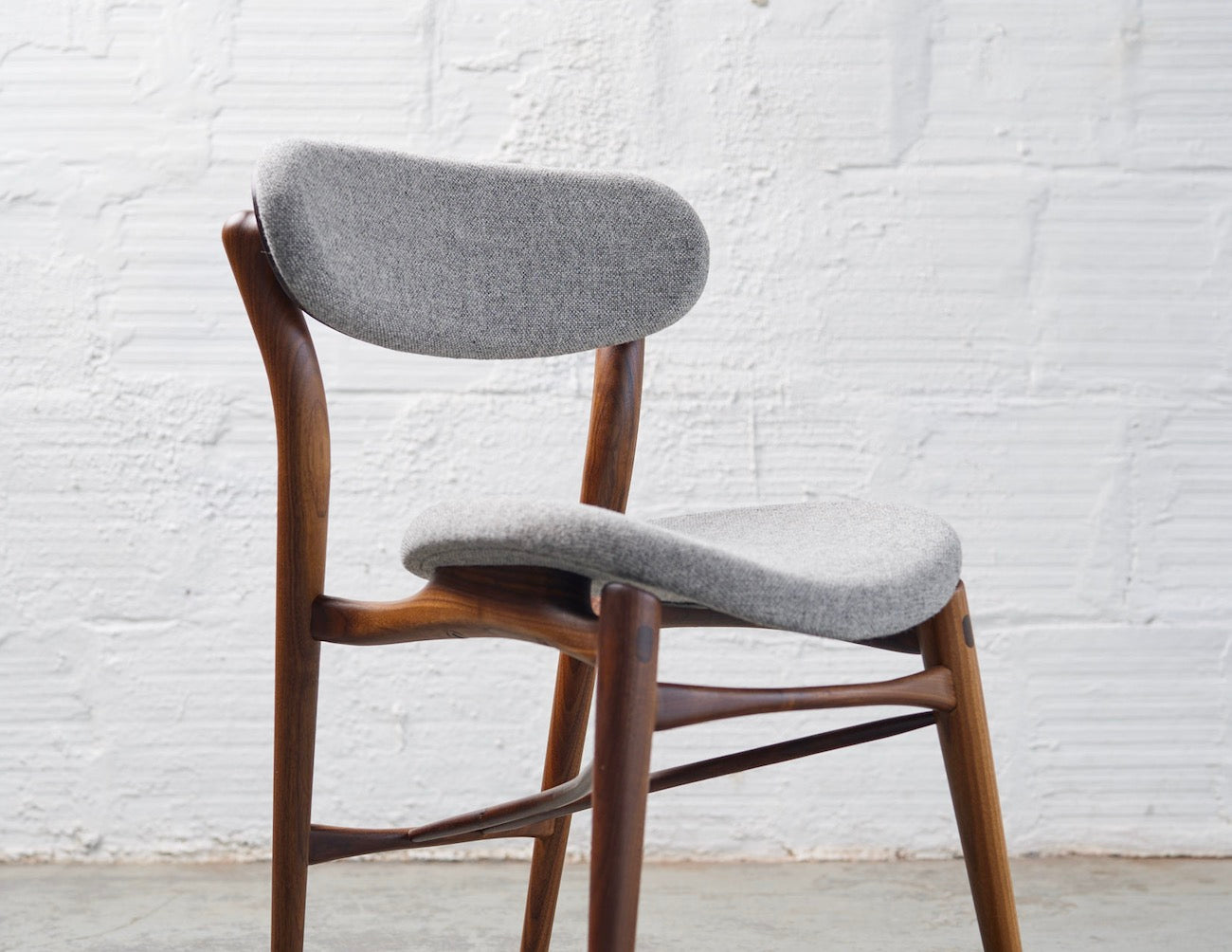 The Fjoon (pr. fyoon) collection rose out of a multi-year obsession with high end upholstery as well as an infatuation with wood joinery and principles of chair strength from the broader chair-making community, especially windsor chair makers. My musings led me to include what are now a few of my favorite aspects of fjoon